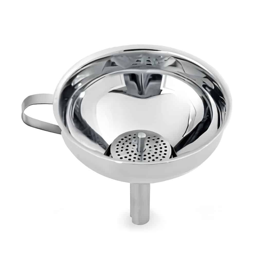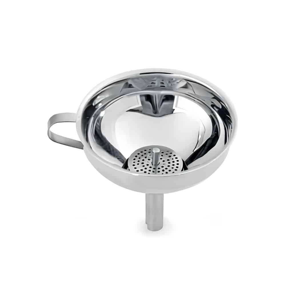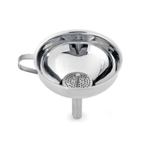 This stainless steel funnel is a practical kitchen tool, perfect for transferring liquids, oils, or dry ingredients with precision and ease. Its durable, rust-resistant construction ensures long-lasting use, while the narrow spout provides smooth and controlled pouring. A must-have for both home and professional kitchens.