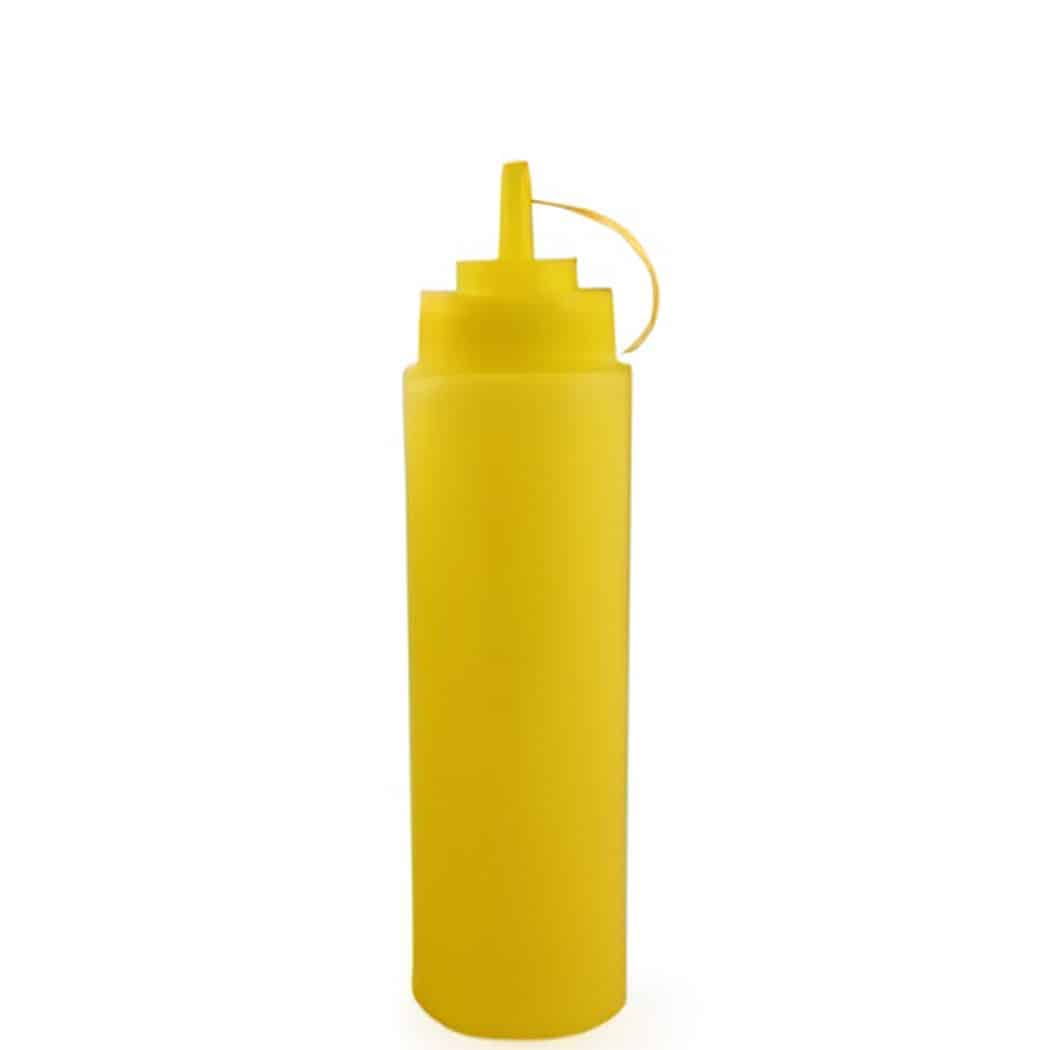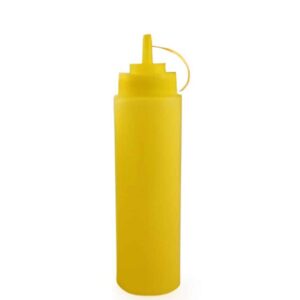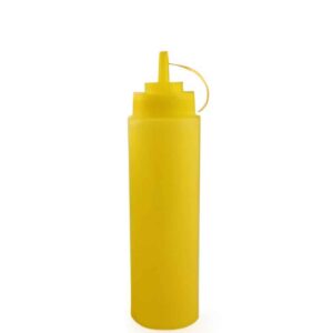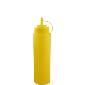 This yellow squeezing bottle offers both functionality and visibility, making it perfect for mustard, dressings, or cooking oils. Crafted from high-quality, food-safe plastic, it ensures easy handling and precise pouring. A great choice for kitchens, food trucks, or catering services.
